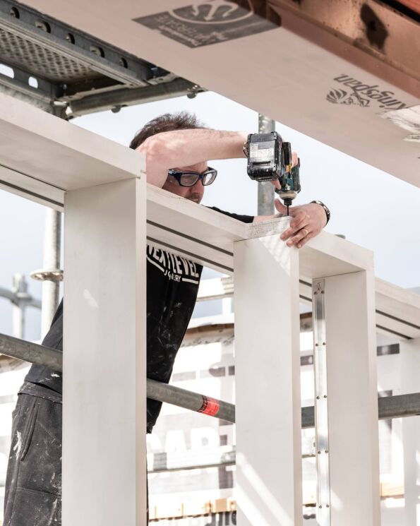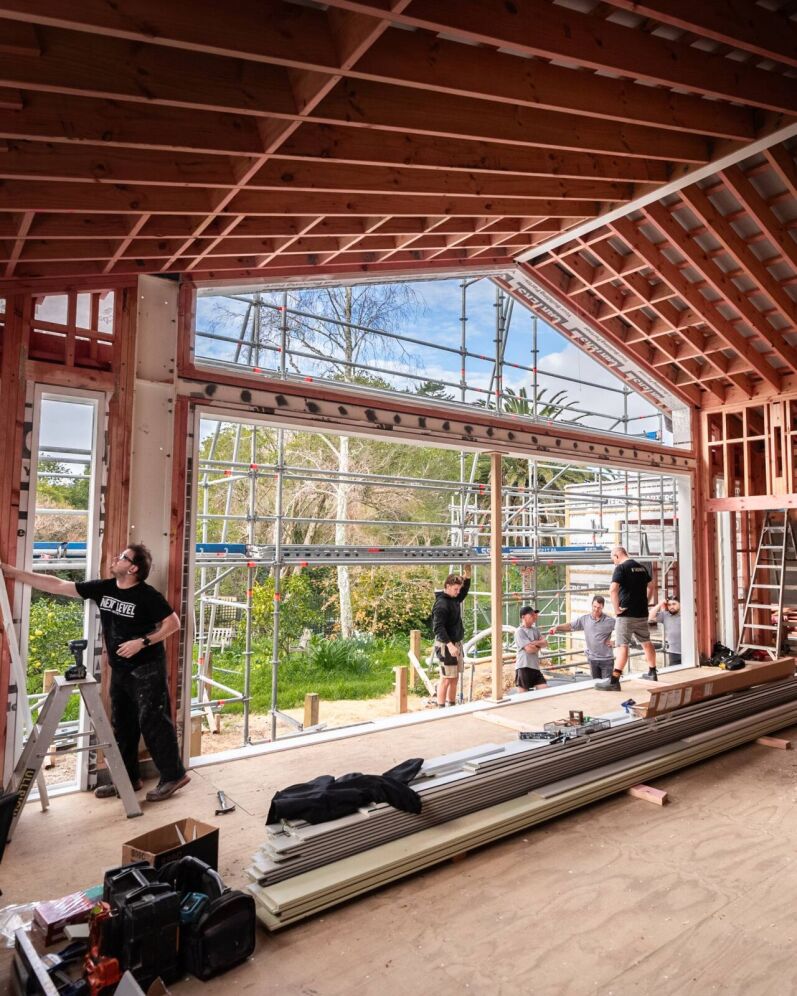 Next Level Joinery, who proudly label themselves as 'timber nerds', were the perfect detail-obsessed company to undertake the engineering and creation of these doors and the windows above. You can see the extension taking shape with the preparation to install the transformative sliders and windows. Such a fantastic way to bring the garden inside and connect with nature, rain, hail or shine.