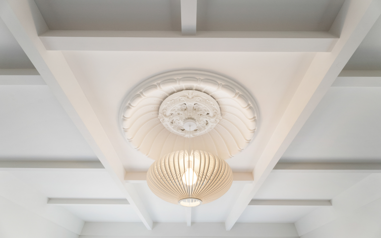 The careful relocation & restoration of treasured ceiling roses, domes & battens